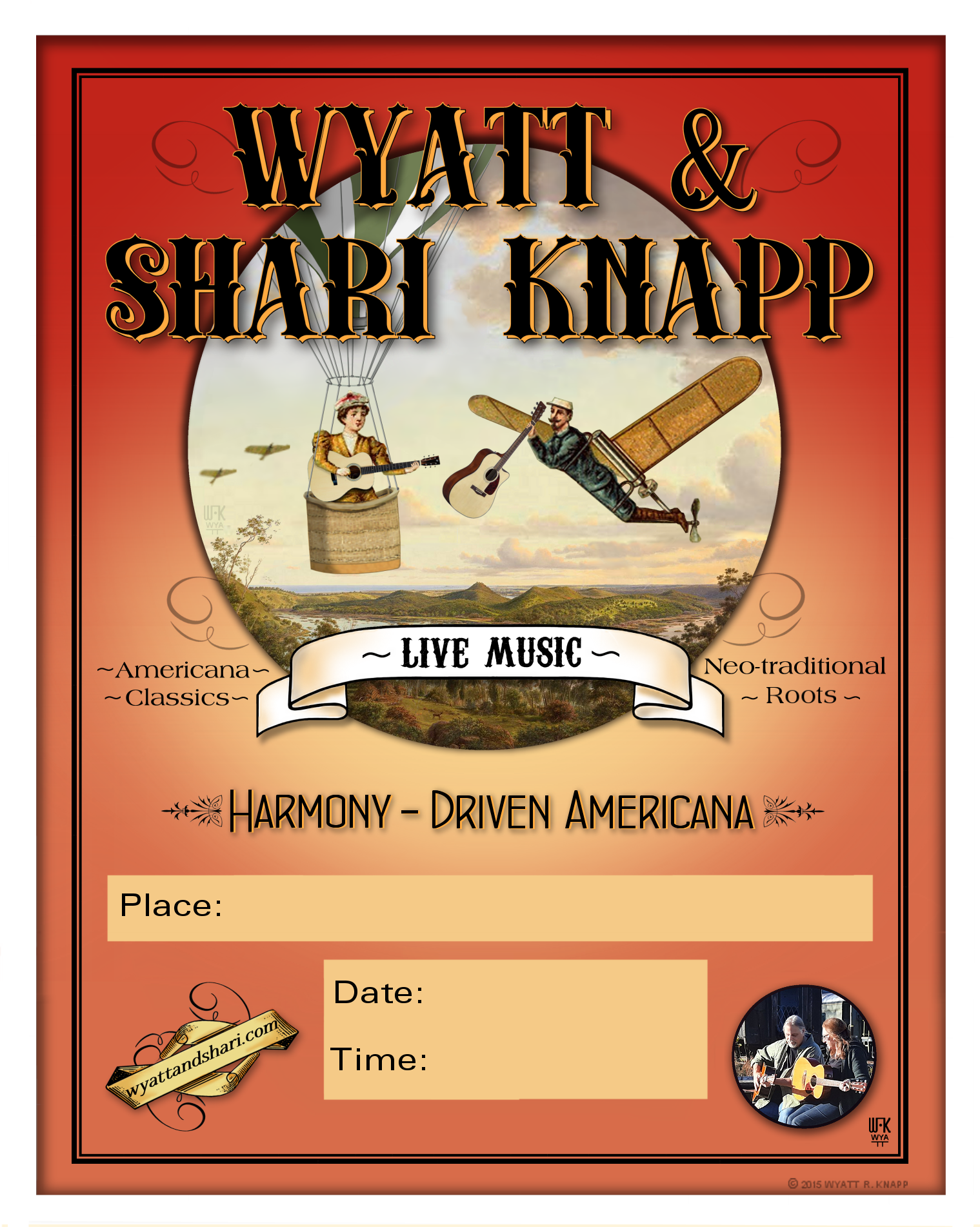 Advertise your event! Wyatt & Shari Knapp poster #1 (1.02 Mb) Click here to download, then right-click and choose "Save Image" |